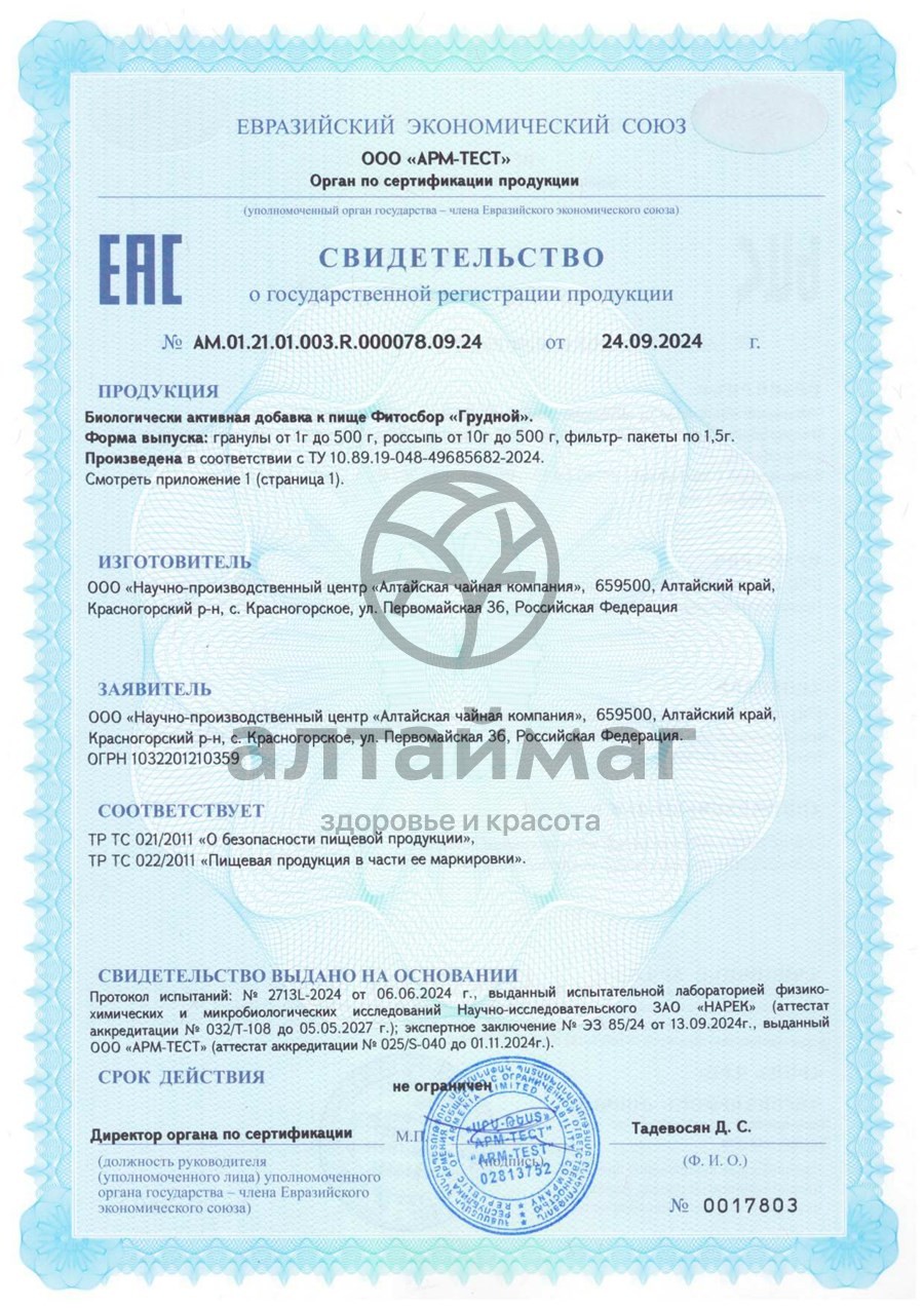 Есть вопросы по товару "Фитосбор Грудной БАД Алтайфлора 20 пакетиков"?