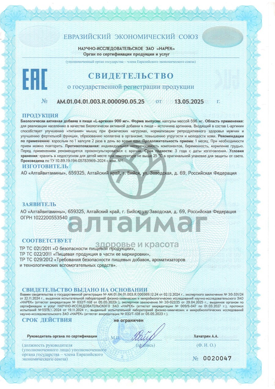 Есть вопросы по товару "L-аргинин Алтайвитамины 60 капсул"?
