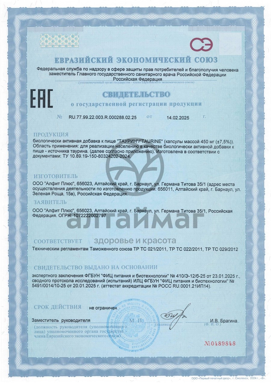 Есть вопросы по товару "Таурин Алфит Плюс 90 капсул"?